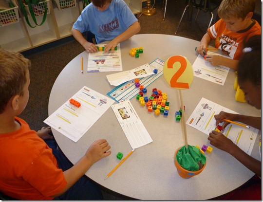 Measurement was a fun chapter! They used many non standard units to measure different objects in our classroom. They used cubes, baby feet, and basketball player feet. They had to record their data. It was so cute to see them working together to measure and record.